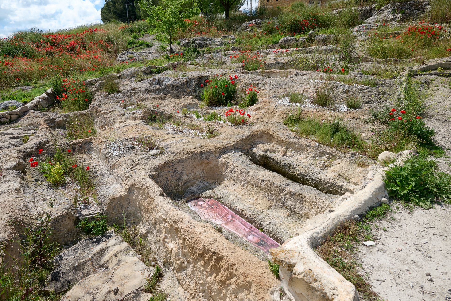 Asociada a este poblado, se encuentra la Necrópolis Mozárabe, con más de ochenta enterramientos excavados en la roca, que presentan tres tipologías singulares: antropomorfa, bañera y rectangular. La prevalencia de las tumbas antropomorfas confiere una gran singularidad al yacimiento. Además, recientes intervenciones han localizado grandes silos excavados en la piedra, utilizados para el almacenamiento de cereal.