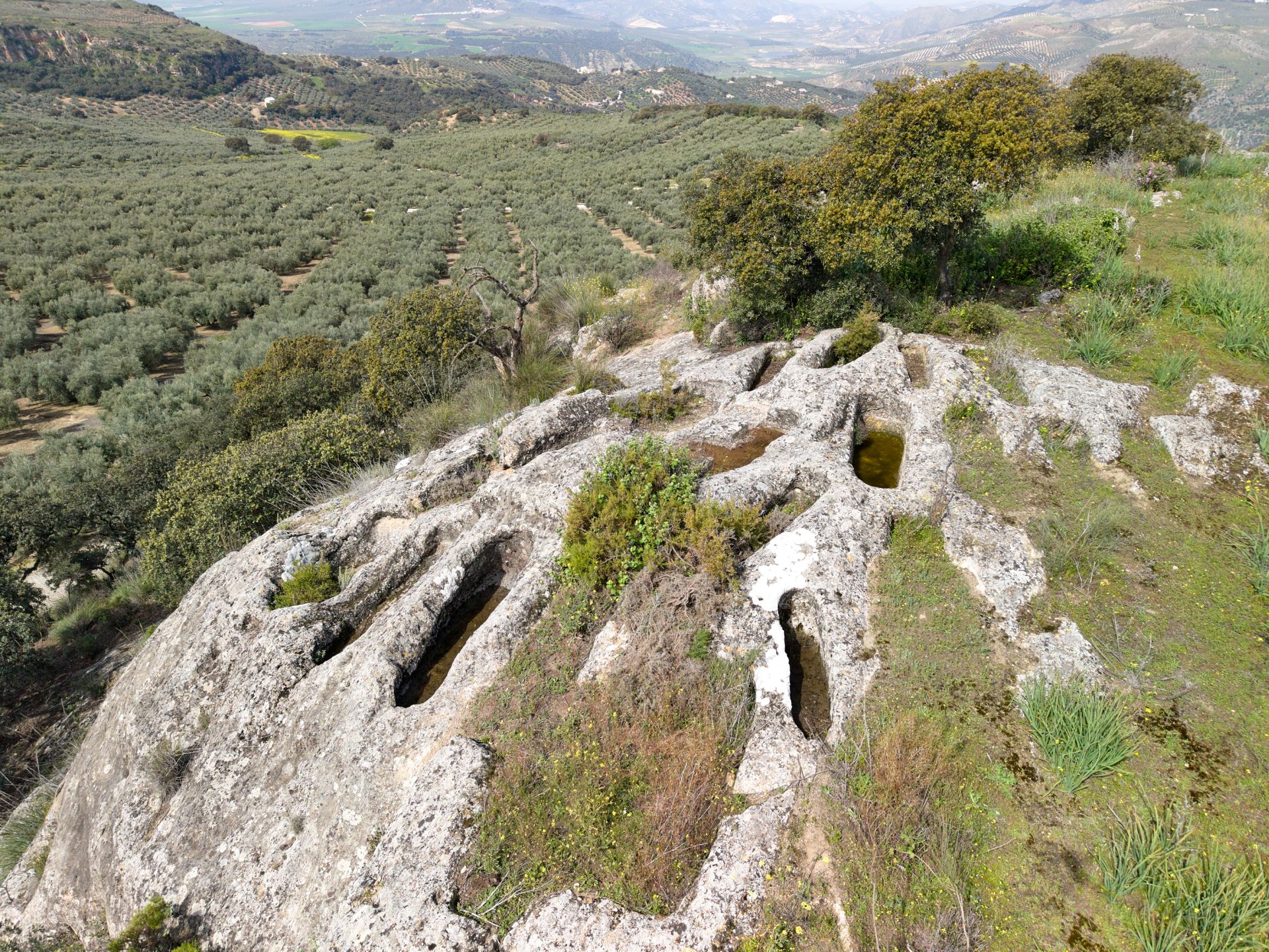 Este yacimiento se enmarca dentro de un espacio arqueológico más amplio que constituye un conjunto monástico rupestre (excavado en roca) con una iglesia rupestre (cueva natural adaptada como zona de culto), un baptisterio rupestre, una necrópolis principal con unas 60 tumbas excavadas en roca distribuidas en 5 grupos, celdas monásticas en cuevas y un ergástulo de carácter penitencial. Se trata de una asociación inédita de todos los elementos propios de una comunidad de monjes y eremitas (personas que vivían en retiro espiritual, aisladas del mundo) dedicados a la vida contemplativa.