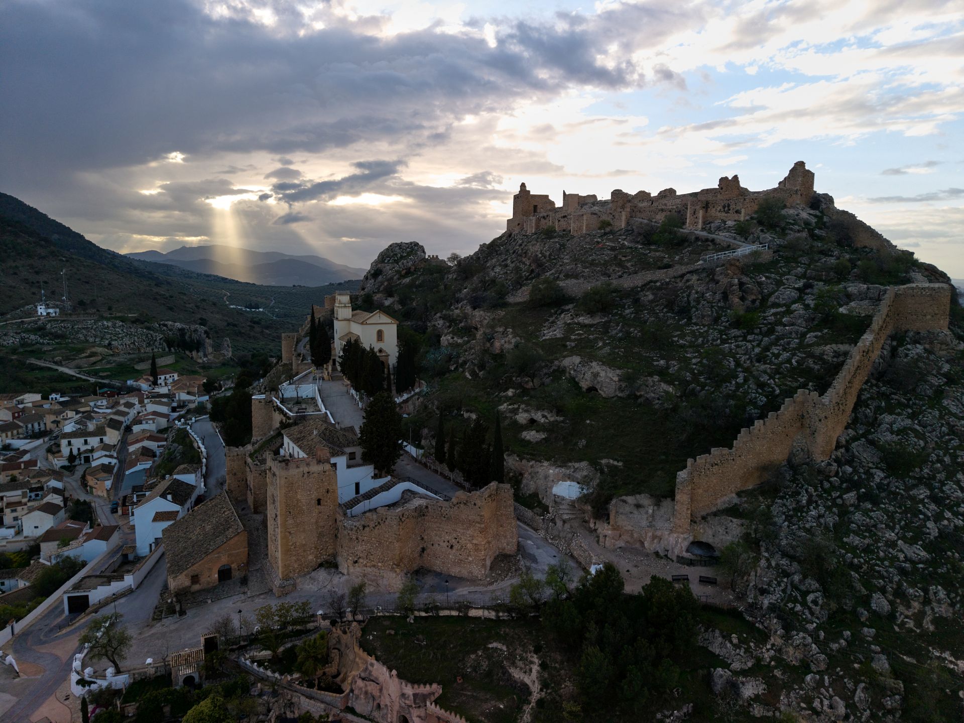El Castillo de Moclín se alza sobre un peñón rocoso a más de 1.100 metros de altitud, dominando con su imponente silueta uno de los paisajes más estratégicos de la provincia. Construido a mediados del siglo XIII, este bastión nazarí fue conocido en árabe como Hins Al-Muqlin -la ‘fortaleza de las dos pupilas’- por su papel como vigía permanente del Reino de Granada. Los musulmanes lo llamaban el ‘Escudo de Granada’, mientras que los cristianos lo bautizaron como ‘La llave de la Vega’, nombres que reflejan su importancia capital en el tablero defensivo de la última frontera de Al-Ándalus.