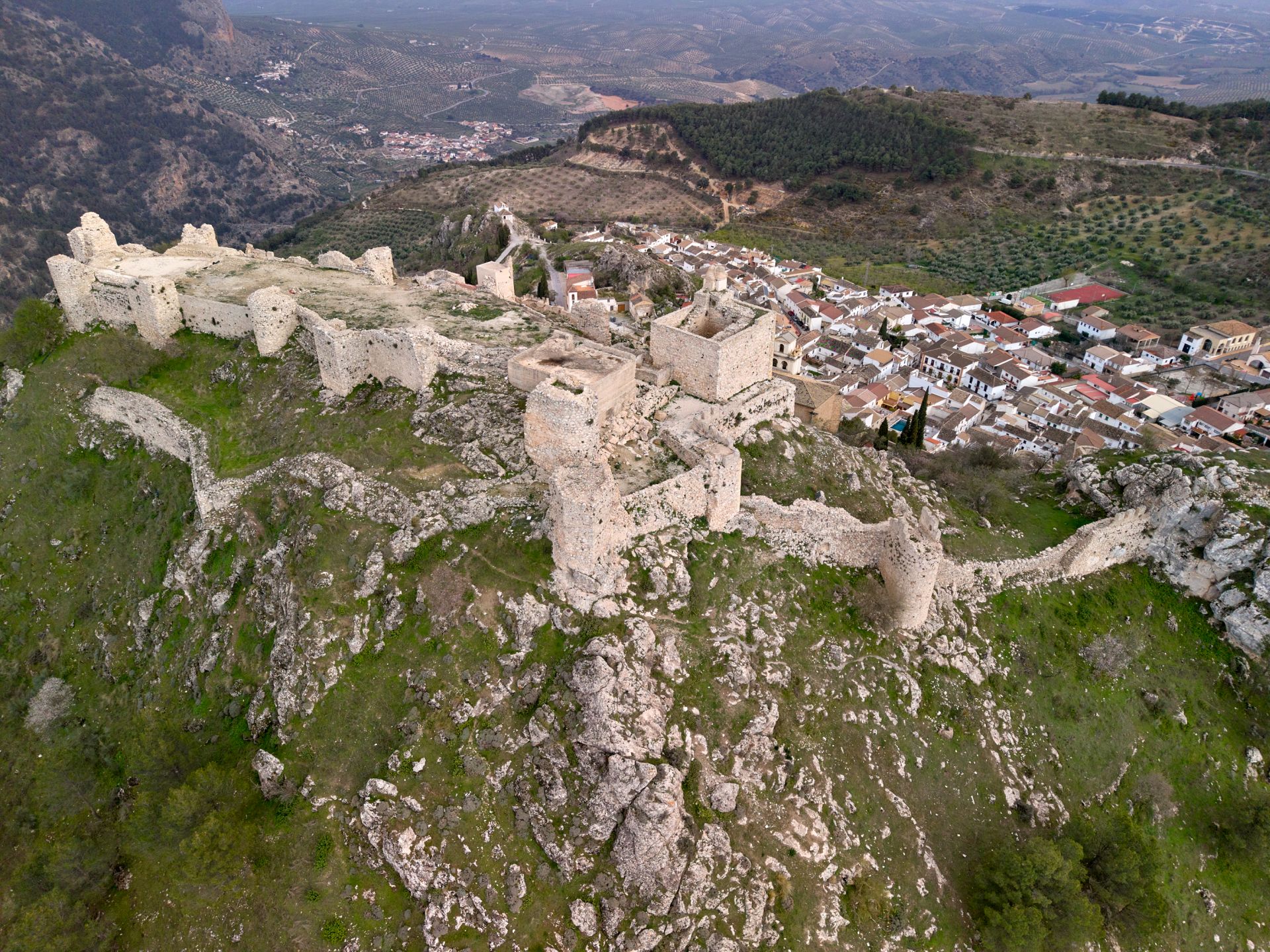 Tras la caída de Alcalá la Real en 1341, Moclín quedó en primera línea de la frontera con Castilla, lo que llevó a los emires nazaríes Yusuf I y Muhammad V a reforzar intensamente sus defensas durante el siglo XIV. La fortaleza se convirtió en un complejo sistema defensivo de dos recintos: las murallas exteriores que aprovechan la propia roca como elemento defensivo, y la alcazaba propiamente dicha, coronada por la Torre del Homenaje en su ángulo nordeste, desde donde se divisa Alcalá la Real. El castillo disponía de dos aljibes —uno de grandes dimensiones excepcionalmente conservado— que garantizaban la resistencia en caso de asedio. Su red defensiva se completaba con torres ópticas como las de Mingoandrés, La Porqueriza, La Solana y la Torre de la Gallina.