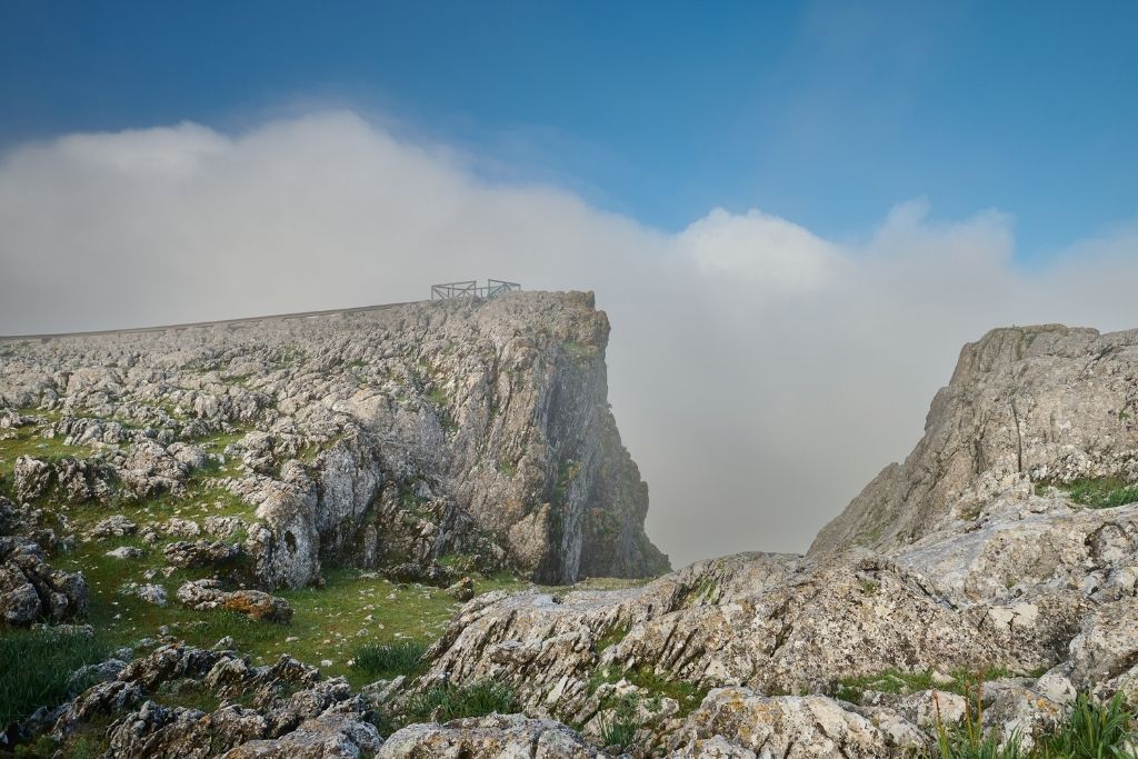 Un paisaje kárstico es aquel formado por la disolución de rocas calizas por la acción del agua a lo largo de millones de años, creando formas geológicas únicas. En Sierra Gorda destacan las dolinas (depresiones circulares o elípticas en el terreno, como grandes cráteres naturales), los lapiaces (rocas con surcos y crestas afiladas que crean un paisaje ‘lunar’), numerosas simas y galerías subterráneas (70 cavidades inventariadas) y charcas naturales de alta montaña.
